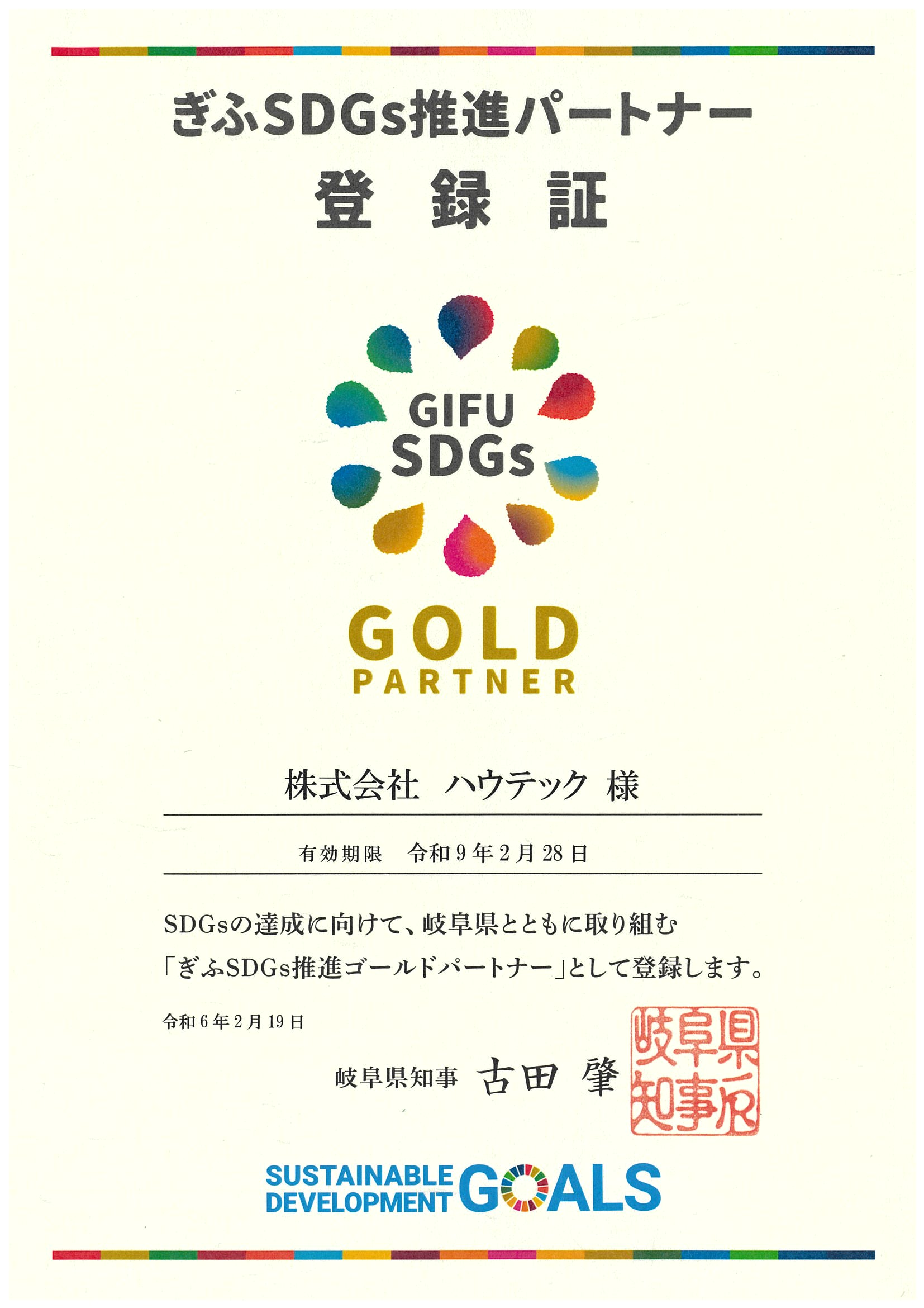 被评为「岐阜县SDGs推进合作伙伴注册制度」的金牌合作伙伴